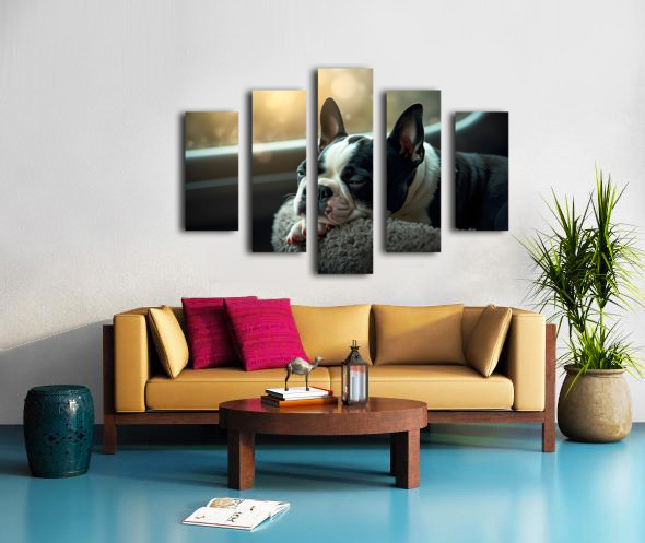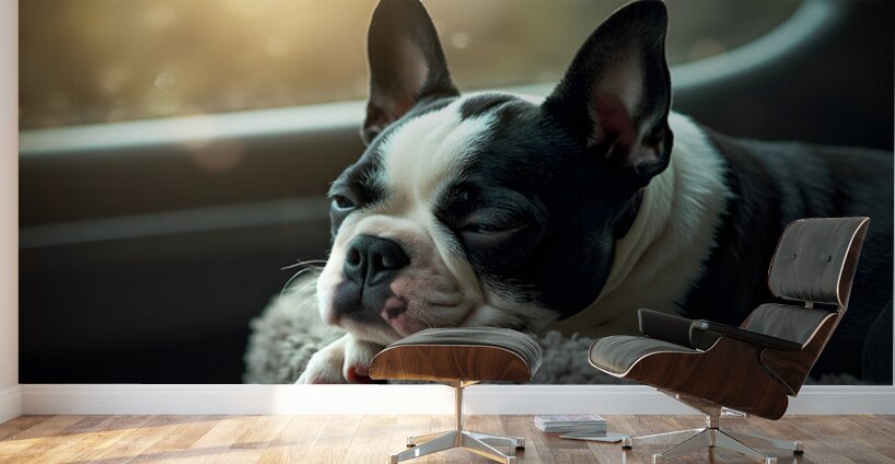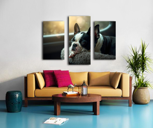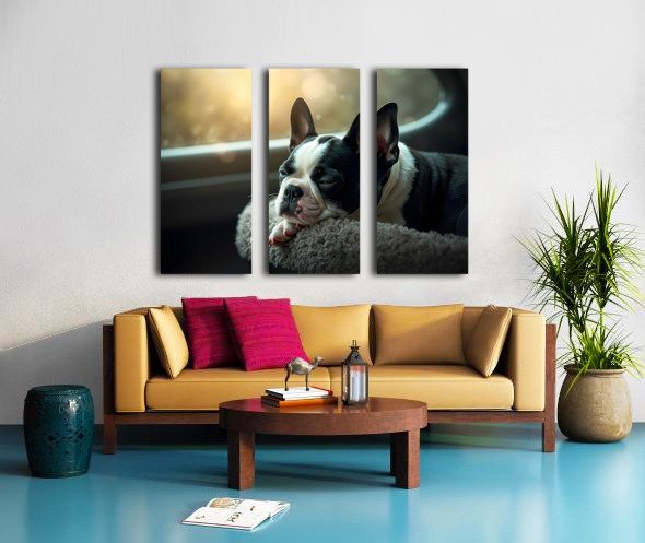 Boston Terrier Puppy Sees Sunshine After The Rain Impression sur toile
