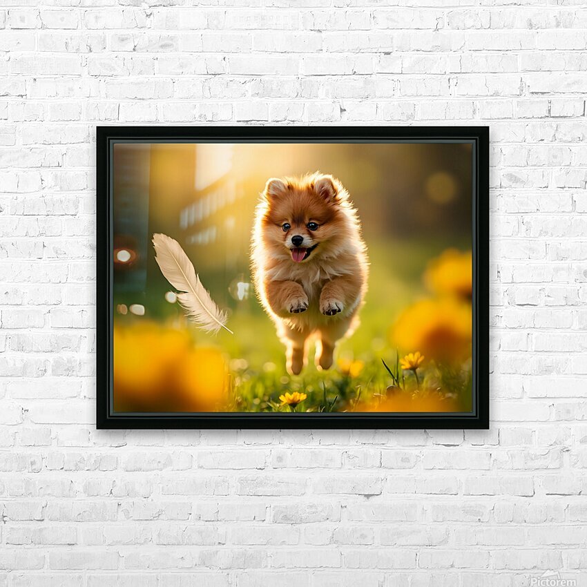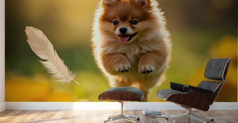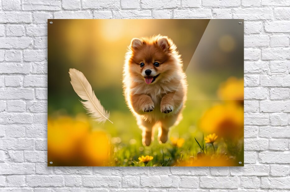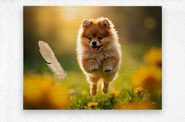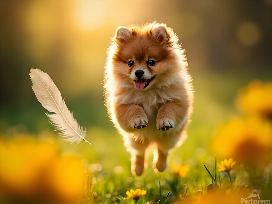 SUR CETTE OEUVRE: FEATHER LANDS ON HAPPY POMERANIAN PUPPY