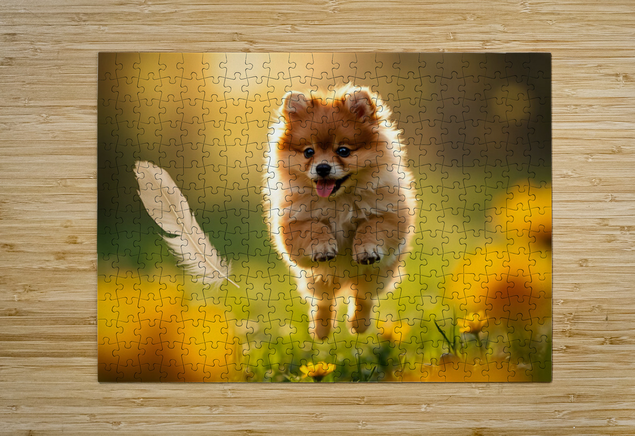 Feather Lands On Happy Pomeranian Puppy Puppy Prints Puzzle