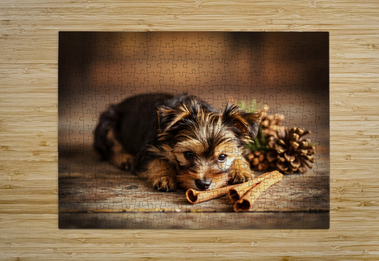 Happy Yorkshire Terrier Puppy With Nature Treasures Puppy Prints Puzzle