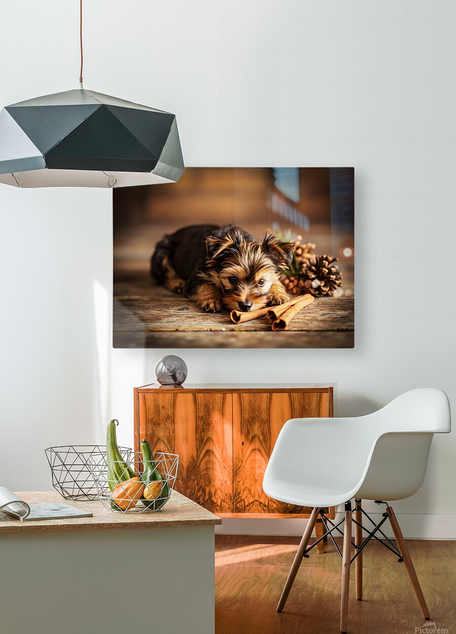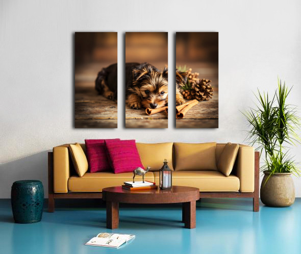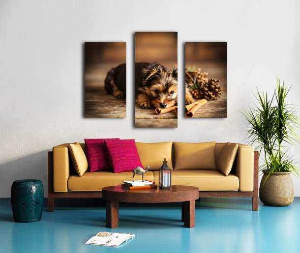 Happy Yorkshire Terrier Puppy With Nature Treasures Impression sur toile