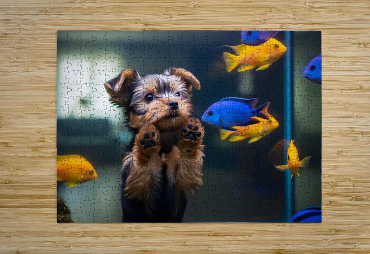 Yorkshire Terrier Puppy Discovers Amazing Aquarium World Puppy Prints Puzzle