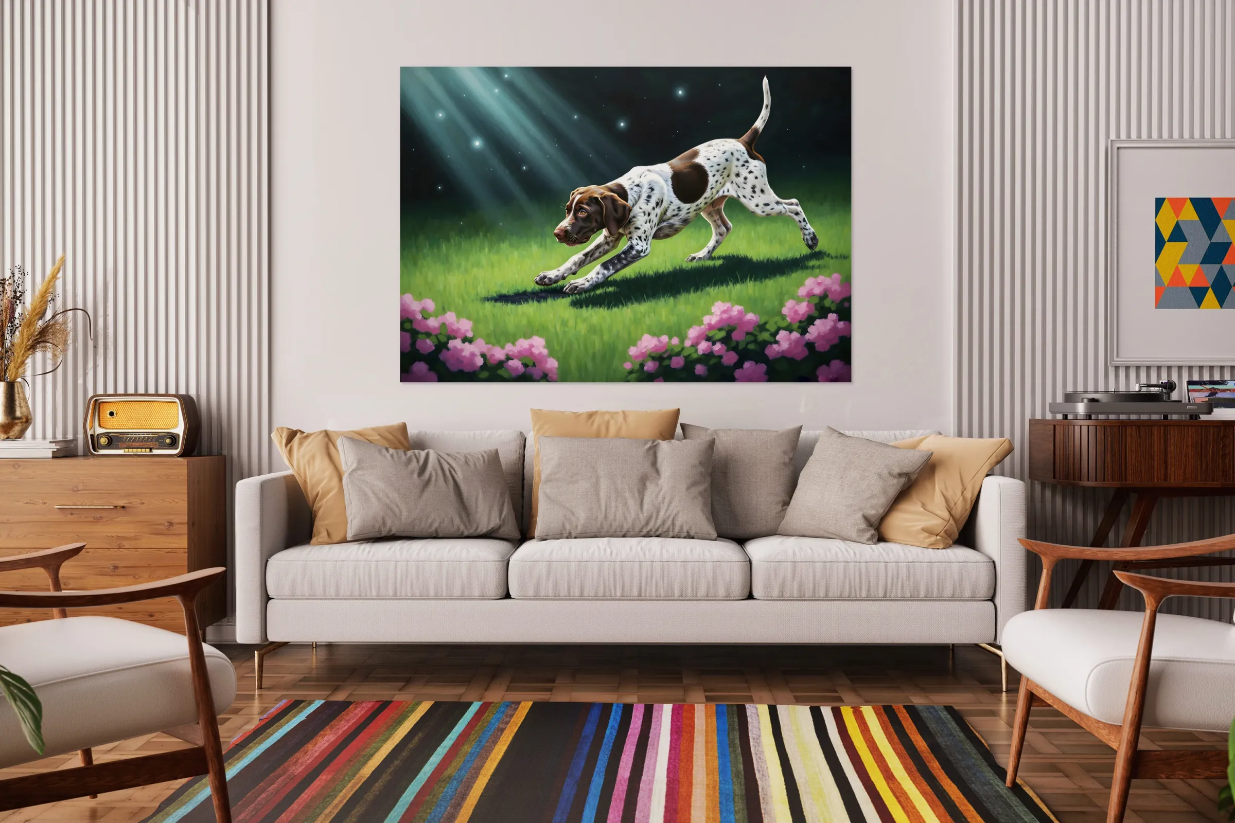 German Shorthaired Pointer Puppy Discovers Night Shadows Impression du cadre