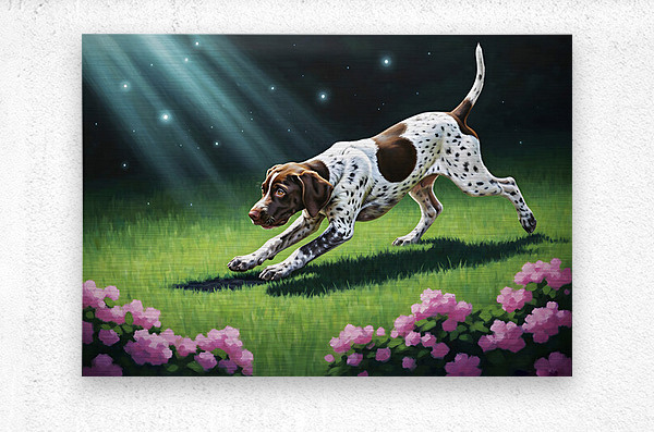 SUR CETTE OEUVRE: GERMAN SHORTHAIRED POINTER PUPPY DISCOVERS NIGHT SHADOWS