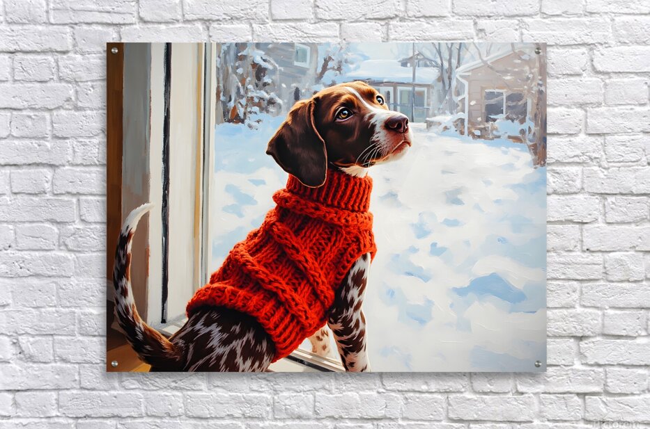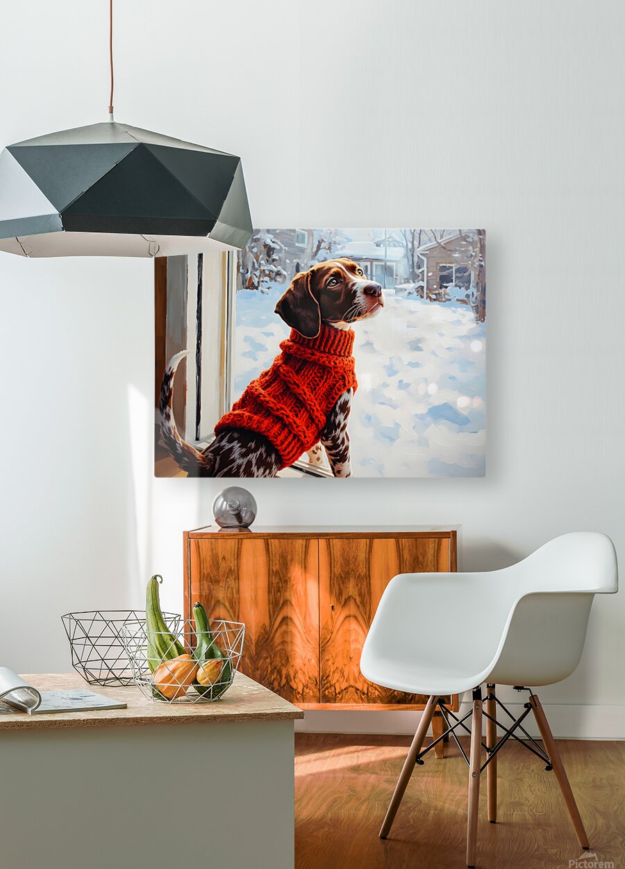 SUR CETTE OEUVRE: GERMAN SHORTHAIRED POINTER PUPPY GETS WINTER SWEATER