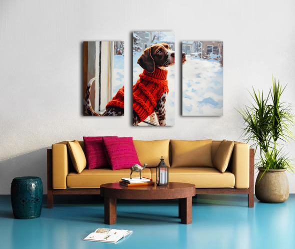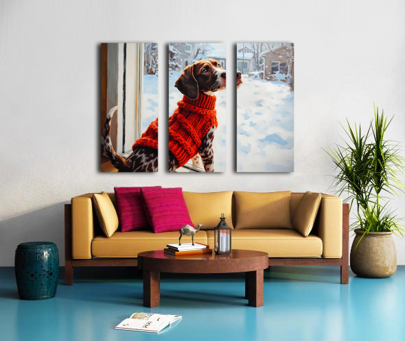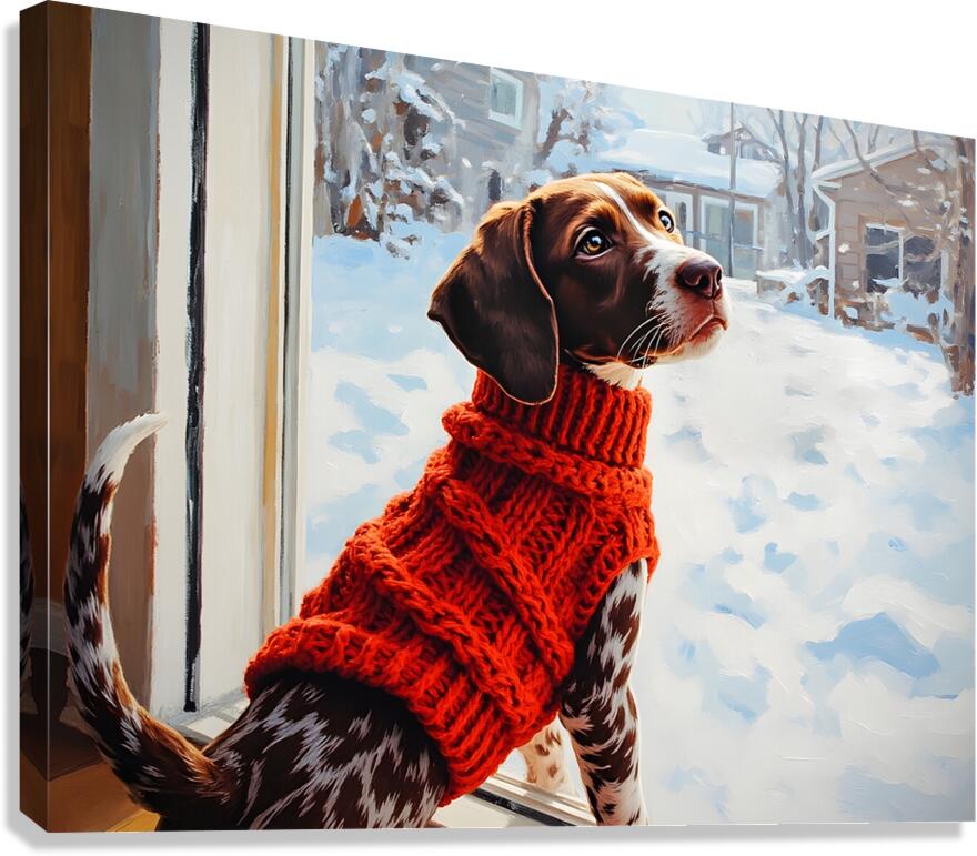 German Shorthaired Pointer Puppy Gets Winter Sweater Impression sur toile