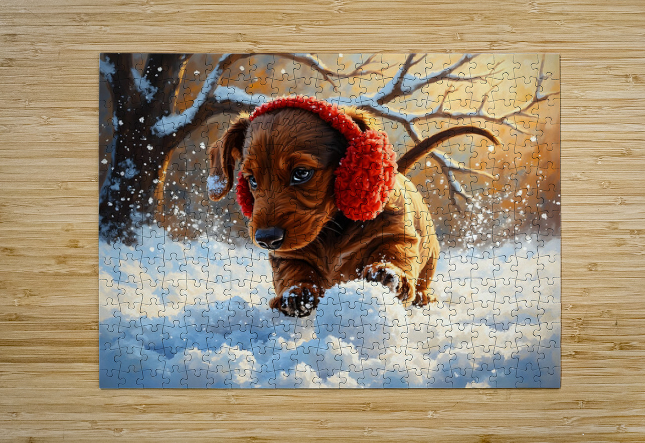 Dachshund Puppys First Snowy Adventure With Earmuffs Puppy Prints Impression de puzzle