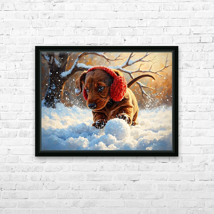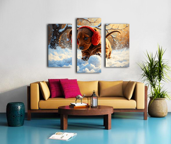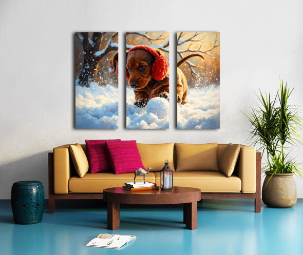 Dachshund Puppys First Snowy Adventure With Earmuffs Impression sur toile