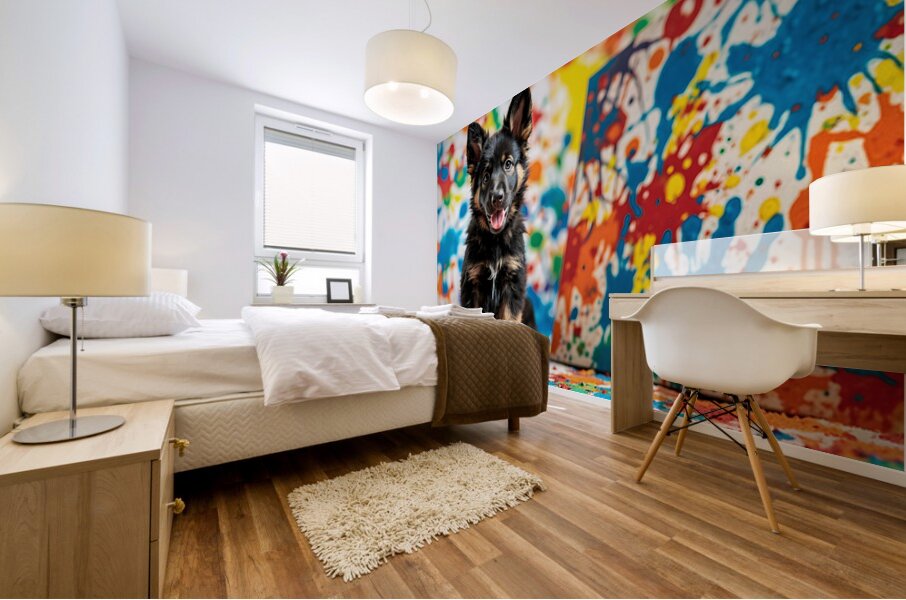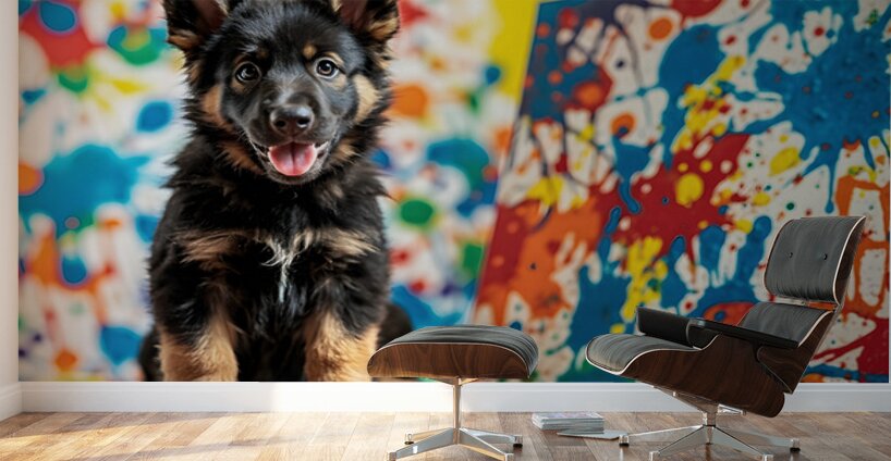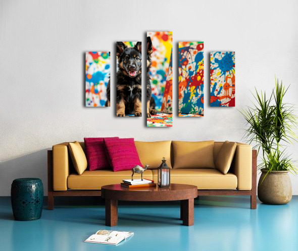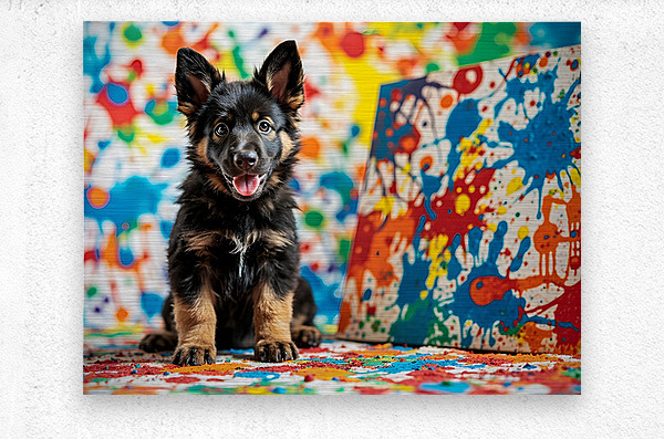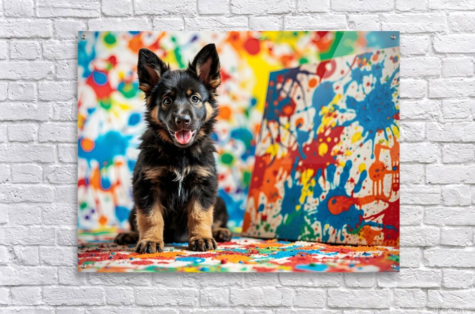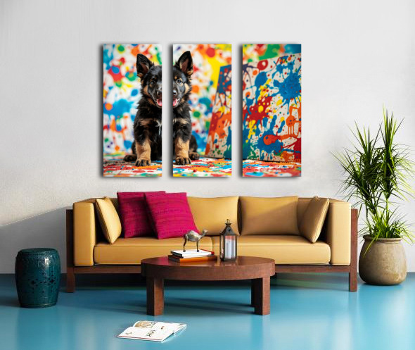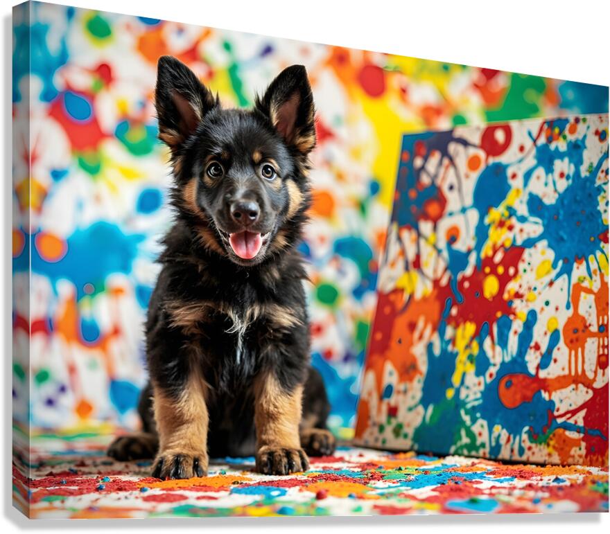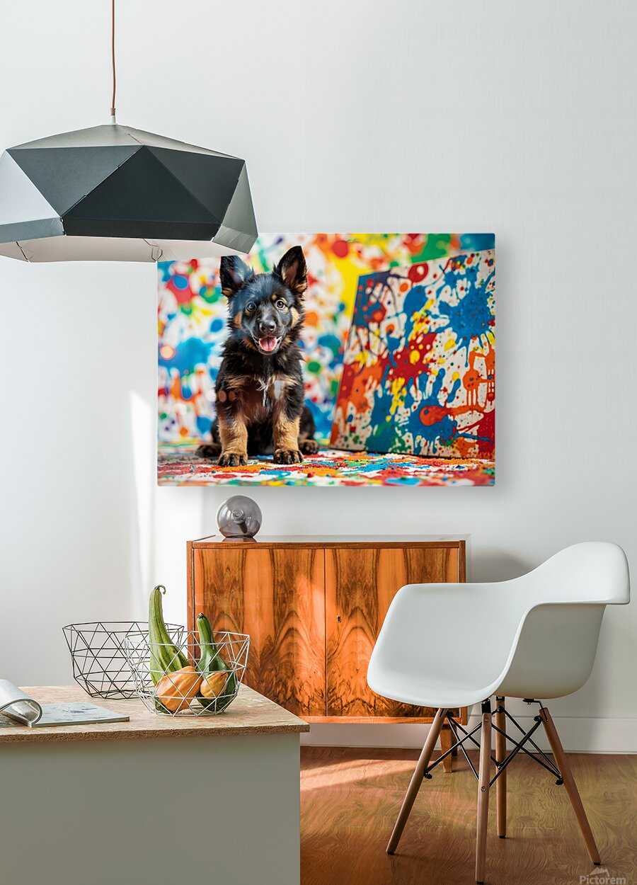 German Shepherd Puppy Gets Clean After Art Adventure Impression sur toile