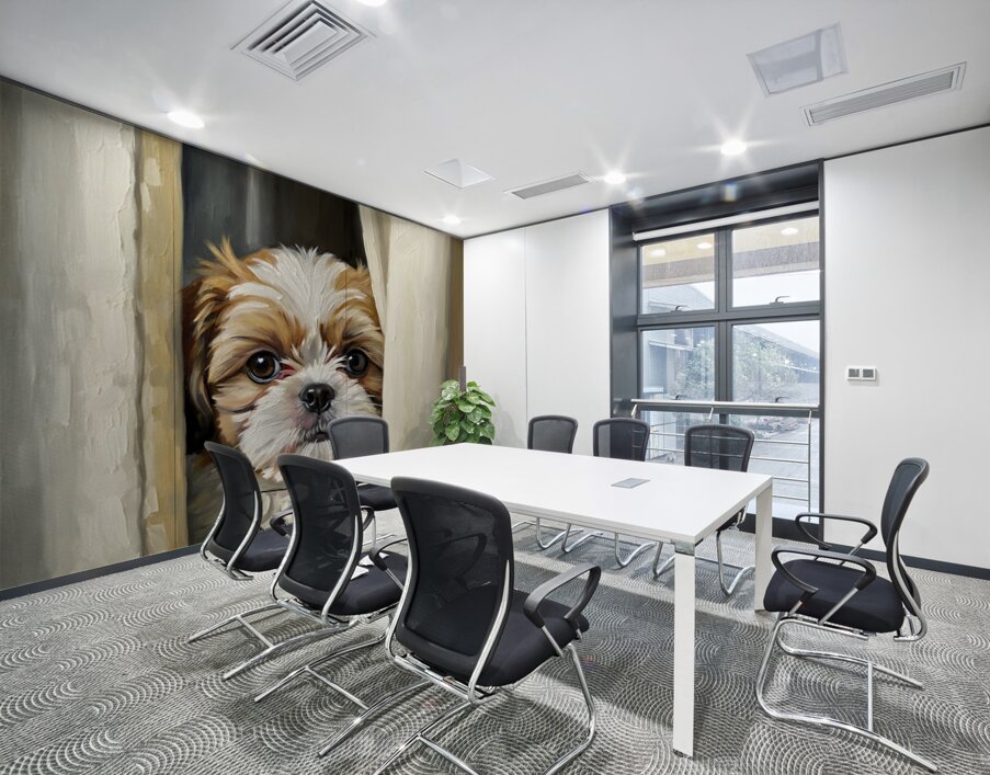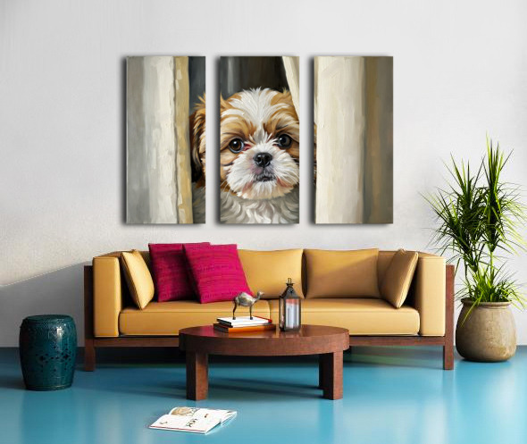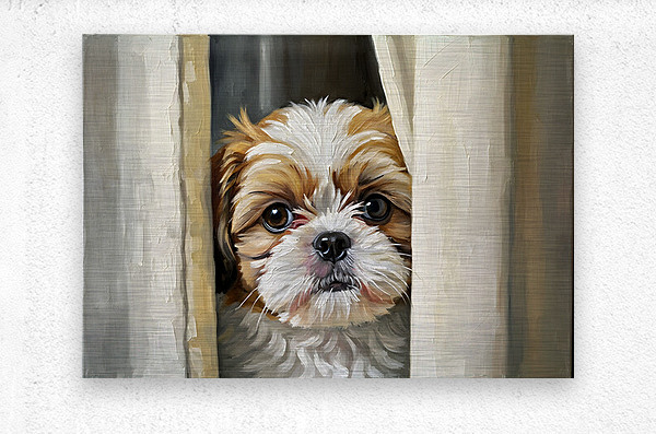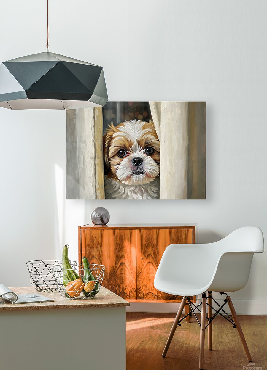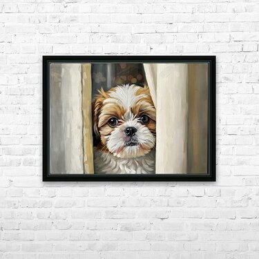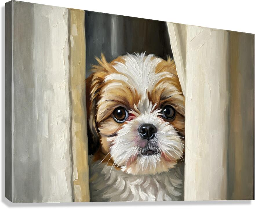SUR CETTE OEUVRE: SHIH TZU PUPPYS PERFECT HIDING SPOT BEHIND CURTAIN