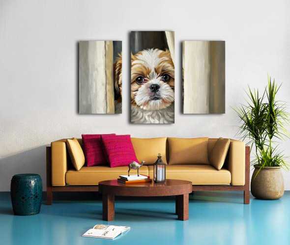 Shih Tzu Puppys Perfect Hiding Spot Behind Curtain Impression sur toile