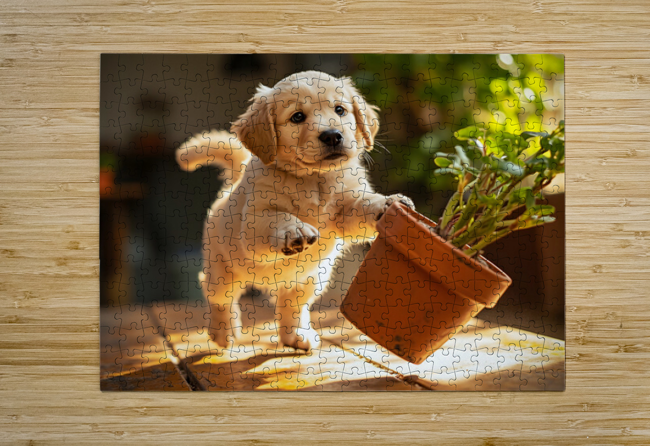 Golden Retriever Puppy Reaches For Plant Pot Puppy Prints Puzzle