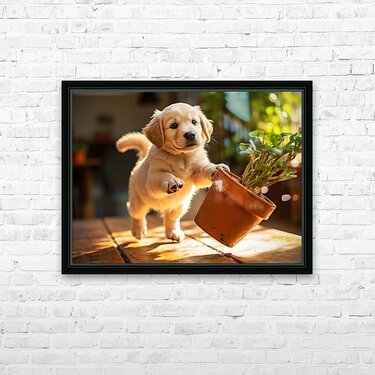 Golden Retriever Puppy Reaches For Plant Pot Cadre photo