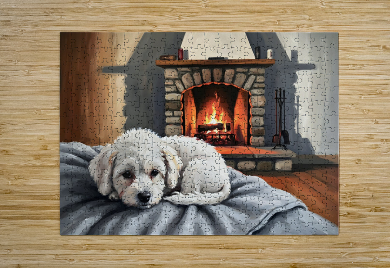 Bichon Frise Puppy Dreams By The Fireplace Puppy Prints Puzzle