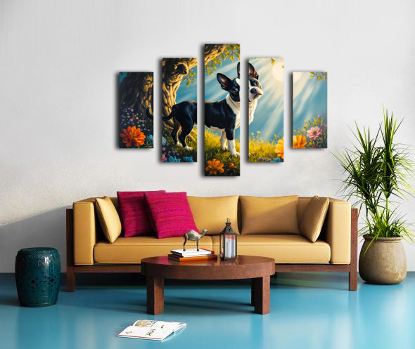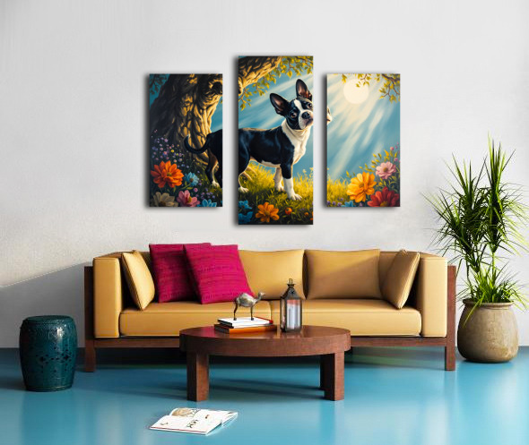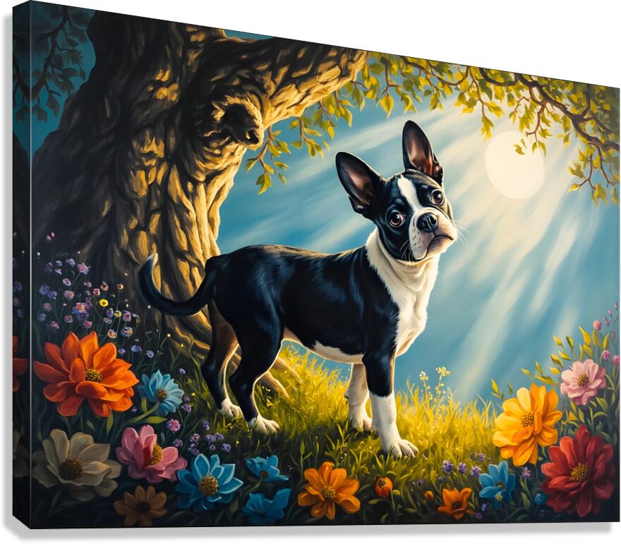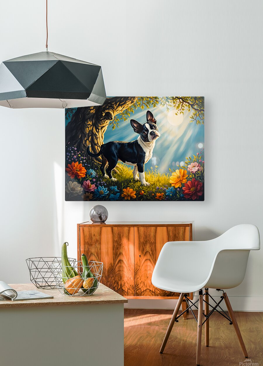 Sleepy Boston Terrier Puppy Rests After Shadow Adventure Impression sur toile