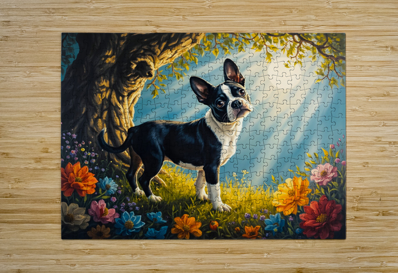 Sleepy Boston Terrier Puppy Rests After Shadow Adventure Puppy Prints Impression de puzzle